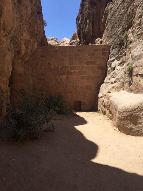 On both sides of the Siq there are pipes or channels that draw water from Wadi Musa outside the city. On the left side there is carved out channel to funnel water, with filters in place along the way. It is truly amazing to see first hand how people from 300 BC addressed the health impacts of the environment. They developed ways to obtain water, hold it, and clean it. Wow!